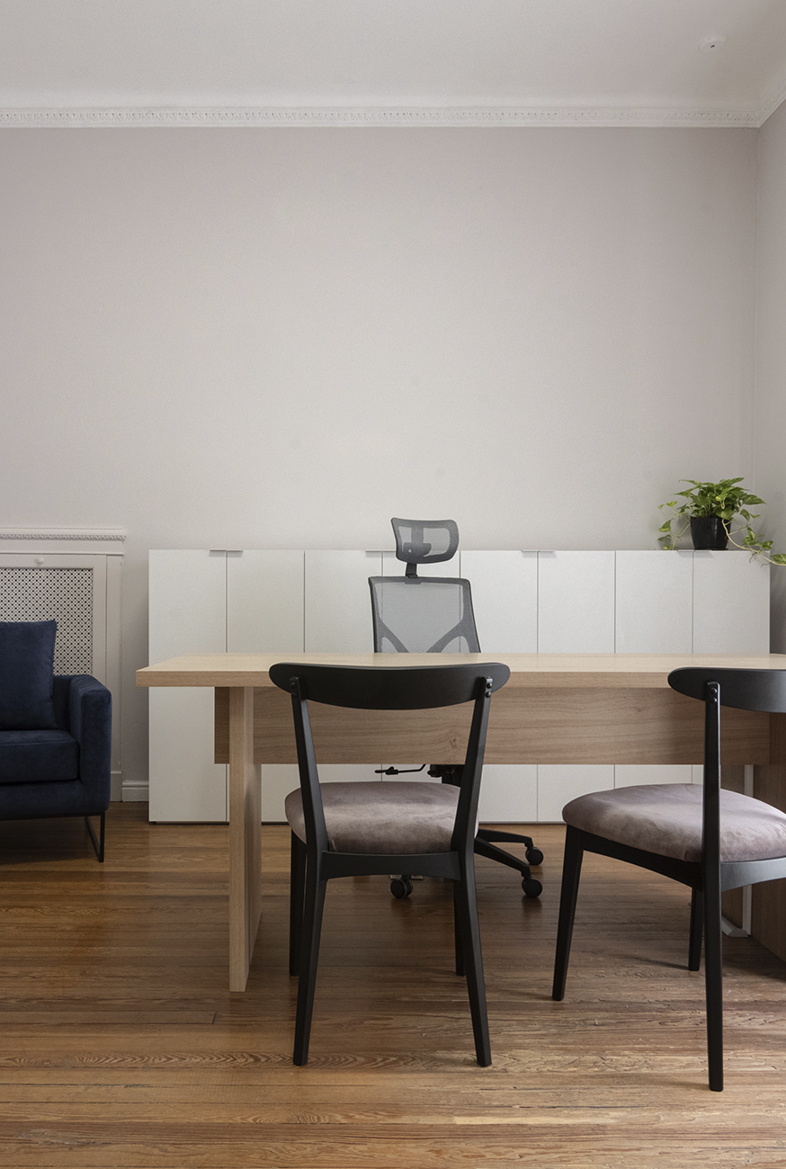 Cada espacio de la oficina fue diseñado a medida, con mobiliario seleccionado específicamente para combinar funcionalidad, estilo y eficiencia.