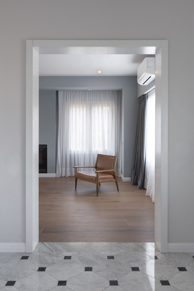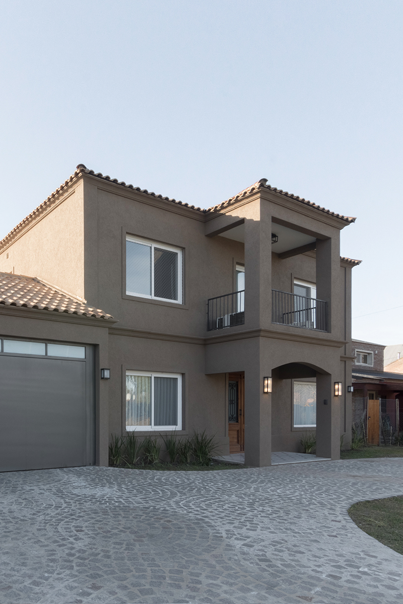 Se trabajó un estilo clásico, con materiales de alta calidad. Techos de tejas, cerramientos vidriados, una escalera con mucho protagonismo y un elegante damero de mármol que aporta sofisticación.